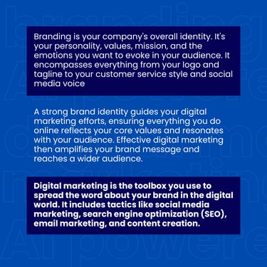 A strong brand identity guides your digital marketing efforts, ensuring everything you do online reflects your core values and resonates with your audience. Effective digital marketing then amplifies your brand message and reaches a wider audience.